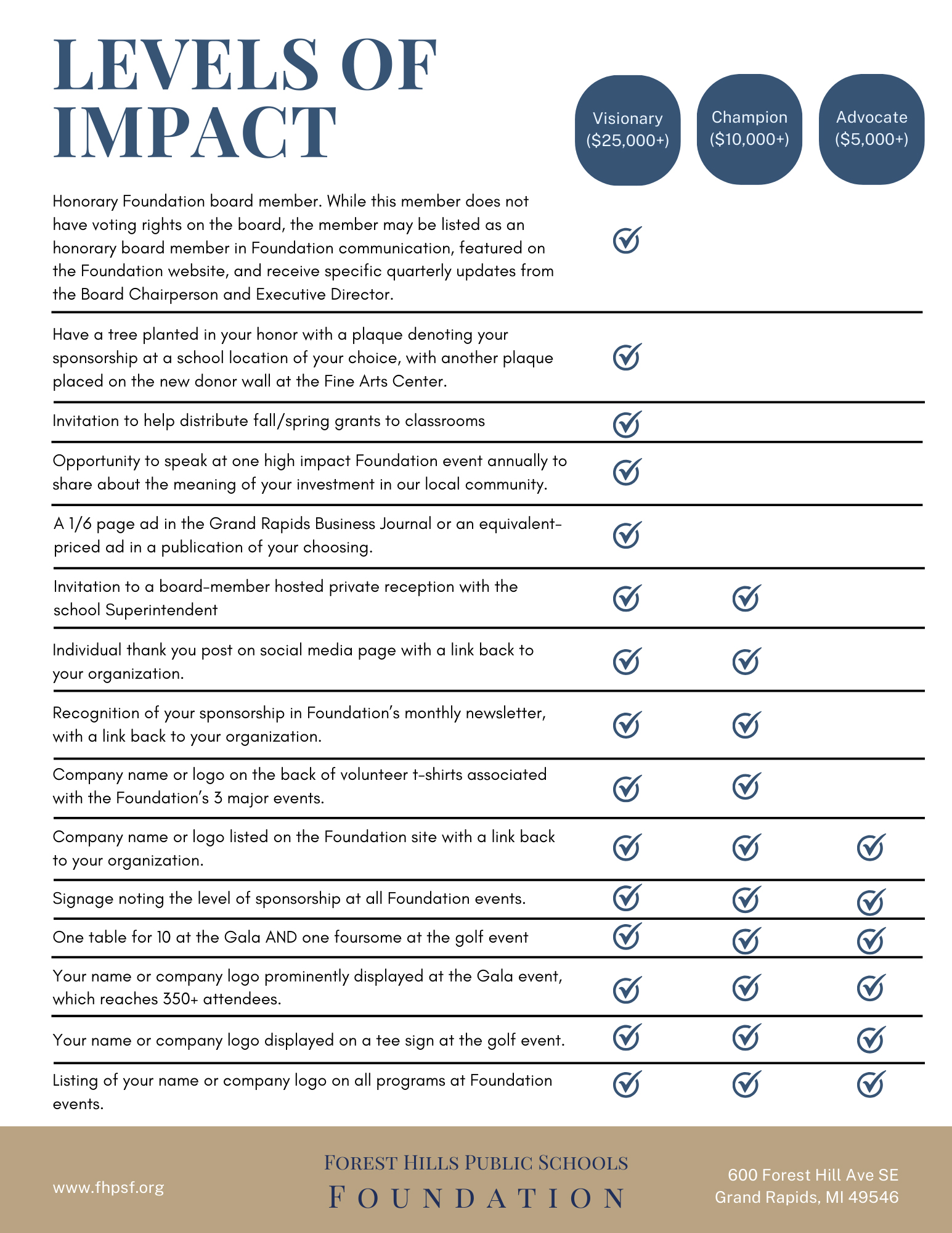 Are you interested in becoming a champion for local education? Make your gift of at least $5,000 below, or contact the Foundation Office at imickelsen@fhps.net or by phone at (616)-493-8500.